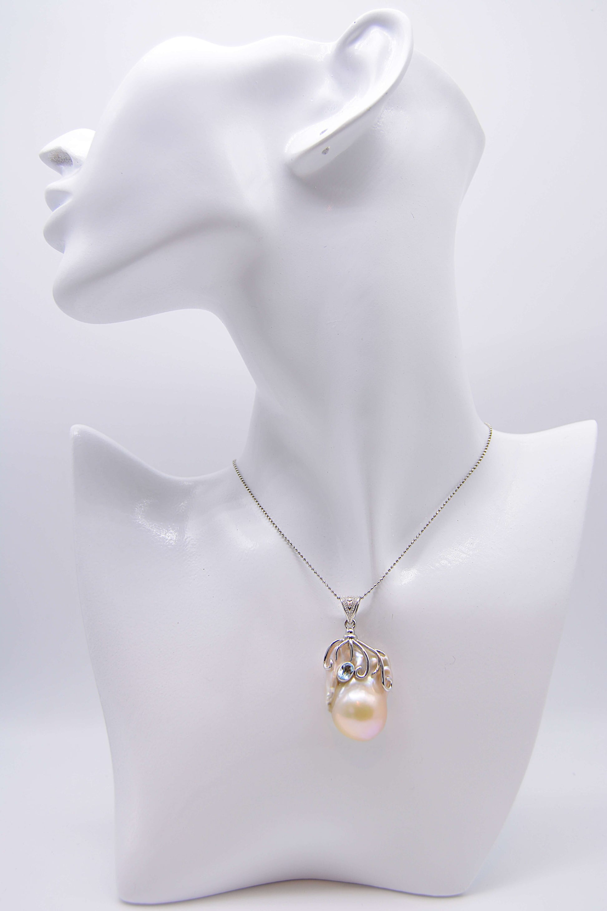 Pearl Pendant-Freshwater Peachy white Baroque with a Blue Topaz
